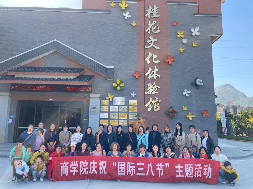 3月8日下午,阳光明媚,春风拂面,商学院分工会在桂林市桂花公社景区举办了庆祝第112个“三八国际妇女节”活动,学院沈菲菲副书记、全体女教职工参加了庆祝活动。 桂花公社以桂林的市花桂花为主题,由桂花文化体验馆...