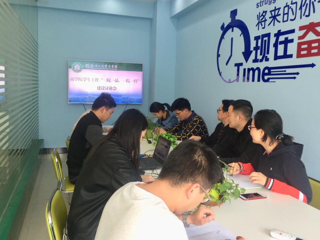 为推动学生工作创新,形成学院学生工作品牌特色,3月27日,在学院创客中心(屏风7303),商学院召开学生工作“一院一品、一院一特”建设讨论会。学院党委书记周章明以及全体辅导员参加了此次讨论会。会议由学工组长沈...