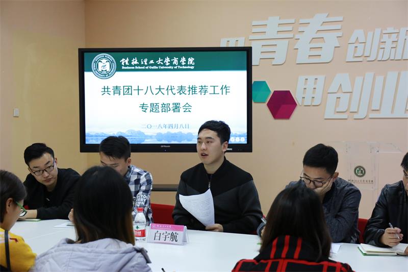 4月8日下午,我院于屏风校区7401会议室召开共青团十八大代表推荐工作专题部署会。学院15、16级各班班长、团支书及参加本次会议。学院团委白宇航老师主持本次专题部署会。 会上,学院团委白宇航老师首先对我院共青团十...