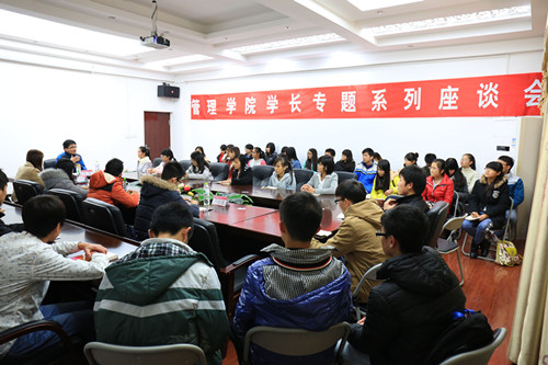 为认真贯彻落实学校2015年学生工作专题会议精神,实现学校提出的 “五高四低三提升”目标,扎实推进学院学风建设,管理学院于12月10日晚在雁山07415会议室举办第一期学长专题系列座谈会之对话优秀党员学长。本次座谈...