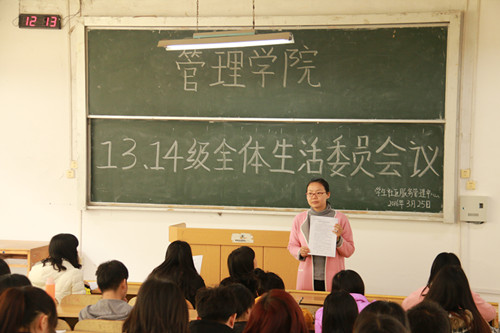 为了规范我院学生宿舍管理,优化学生宿舍卫生环境,我院于3月25日在屏风2101教室召开学生社区管理工作会议,学生社区管理服务中心成员和2013级、2014级生活委员参加了会议。会议由学院学工组长沈菲菲主持。 会议上,...