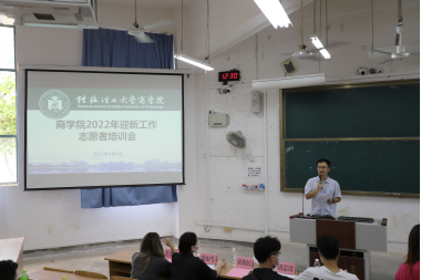 9月8日中午,学院在雁山校区07119教室召开2022级新生迎新工作志愿者培训会。学院团委书记宋海民、2021级、2022级辅导员代表及全体迎新志愿者出席了会议。 会上,宋海民向参加本次迎新工作全体志愿者表示感谢,就迎新...