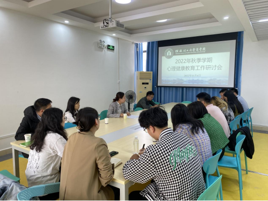 11月4日,商学院在雁山校区07501会议室召开2022年秋季学期心理健康教育研讨会,会议由商学院党委副书记沈菲菲主持,全体辅导员参会。 会上,沈菲菲首先对学院承办的“世界精神卫生日”系列活动进行盘点和总结,强调要...