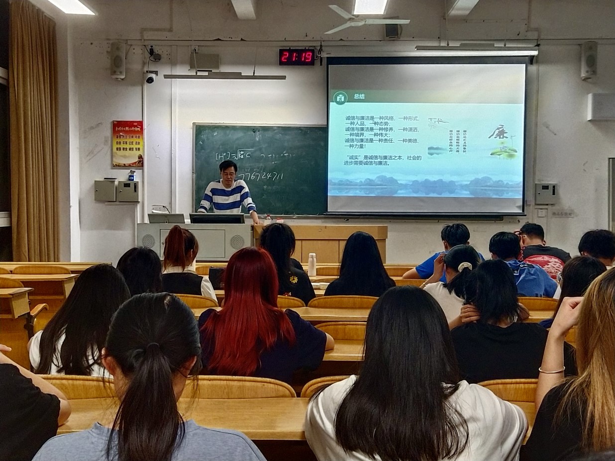 为加强对学生的诚信教育,弘扬社会主义核心价值观,增强同学们的诚信意识和责任担当,我院各班级于5月15日-28日开展诚信教育主题班会。班会由各班班主任主持。班会中,各班班主任围绕诚信教育这一主题,结合青年学生的成长规律,从金融诚信、学术诚信、考试诚信、求职诚信等四个方面出发,并辅以真实案例解读、热点分析,深入讲解了诚信的深刻内涵和诚信做人的时代价值,勉励当代大学生牢固树立诚信为本,操守为重,守信光荣,...