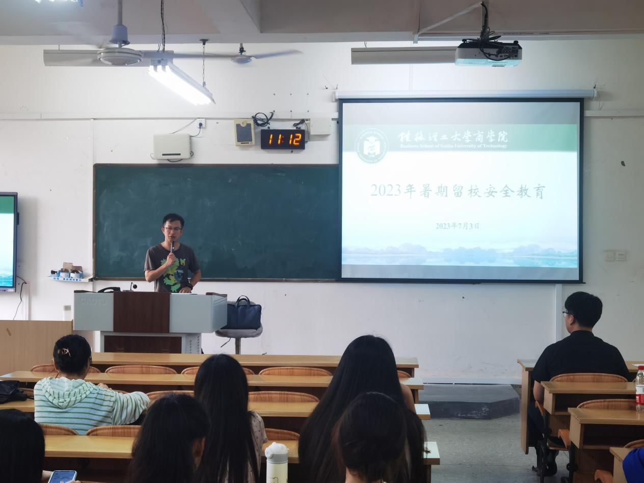 为做好暑期留校学生安全教育工作,7月2-4日期间,商学院各年级辅导员组织分别在屏风和雁山两校区组织留校学生召开2023年暑期留校安全动员会。会上,辅导员从学校管理规定、住宿安全等方面提出具体要求,并重点强调以下内容:一是要求学生遵守学校暑期留校统一管理规定,禁止私自离桂和夜不归宿。二是增强安全意识,注意用电安全、交通安全和人身安全,注意防火防盗,谨防电信诈骗,留校期间严禁到江河湖泊及不规范游泳场所游泳...