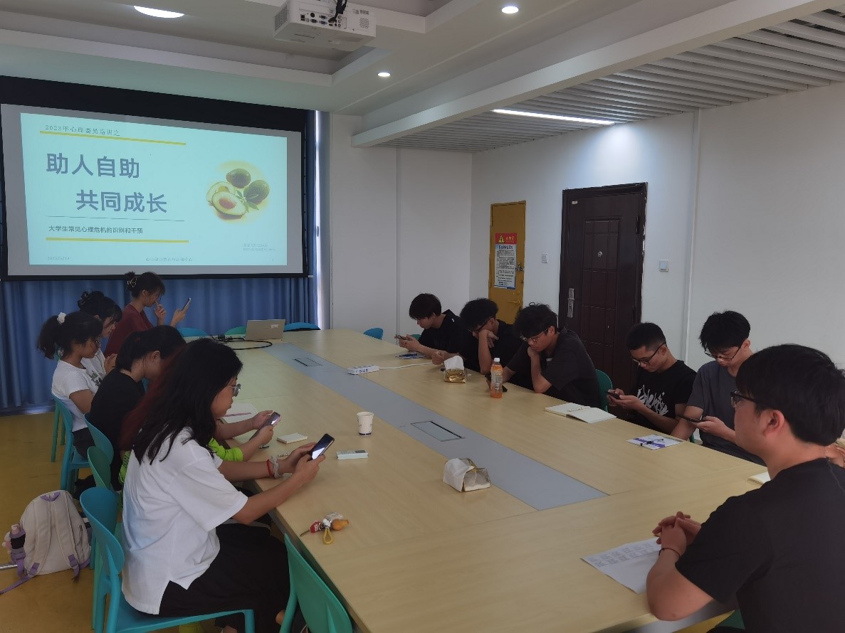 为进一步聚焦我院心理健康教育学生骨干队伍建设,加强我院心理委员的综合素质和工作能力,发挥同辈互助作用。我院于6月25日在雁山校区07501玻璃房举办心理委员培训活动。培训主要围绕心理委员工作职责与定位、心理健康的标准、心理问题识别以及心理危机干预等方面进行。培训期间,各班心理委员认真听讲,积极与老师进行交流互动。老师从心理委员的工作职责、定位、必备素质以及必备知识引出培训内容,让同学们畅所欲言,积极讨...