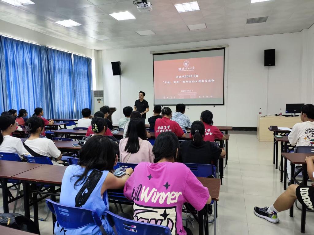 为进一步加强中秋国庆黄金周学生的安全稳定工作,9月14-9月27日,我院组织辅导员、班主任,以线上线下两种途径,全覆盖开展安全主题教育。辅导员、班主任通过周末晚教育、主题班会、年级大会、下宿舍走访等多形式,围绕意识形态、舆情、电信诈骗、防溺水、防火灾、心理疾病与意外伤害、校内外交通安全、学生活动场所安全、学生宿舍管理等九个方面开展安全教育,尤其强调预防网络诈骗、禁止私自下水游泳等问题,要求学生严格遵守...