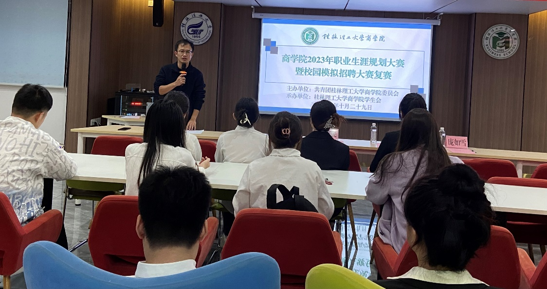 为进一步加强我院学生生涯规划意识,提高我院毕业生的求职能力,我院于10月27日在屏风校区7213、7211教室举办2023年职业生涯规划大赛暨校园模拟招聘大赛。本次大赛由学院学工组长谭咏梅老师、团委书记宋海民老师、团委副书记覃泰树老师、2020 级辅导员敖明明老师担任本次大赛评委,共计48名选手通过初赛选拔顺利进入复赛。大赛伊始,宋海民作赛前寄语,说明了本次大赛的目的,本次大赛旨在提高商学院毕业生的就业质量,加强实习...