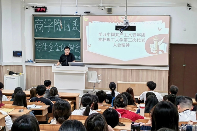 3月29日中午,商学院学生会思想引领专题培训第一讲在雁山校区07119举行。此次培训由学院团委书记于帅帅主讲,学院全体学生会工作人员参加学习。 会上,学院团委书记于帅帅老师带领大家学习党的二十大报告并强调,学习党的二十大报告,不仅是理论学习的深化,更是青年学子自我提升、服务社会的实践指南。他号召学生会成员们将报告精神内化于心,外化于行,以实际行动践行报告中关于青年工作的指导思想,争做有理想、敢担当、能...