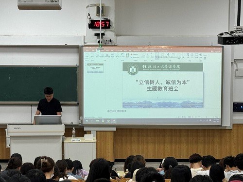 为进一步推动“清廉商院”建设,增强同学们的诚信意识和责任担当,以实际行动彰显诚信力量,学院于5月15日-28日,面向全体学生开展了“立信树人 诚信为本”诚信教育主题班会,覆盖学院三千余名学生,共同接受诚信教育。本次主题班会,结合青年学生的成长规律,围绕学术诚信、考试诚信、求职诚信、金融诚信四个方面,并辅以真实案例解读、热点分析,深入讲解了诚信的深刻内涵和诚信做人的时代价值,引导全体学生牢固树立诚信为本...