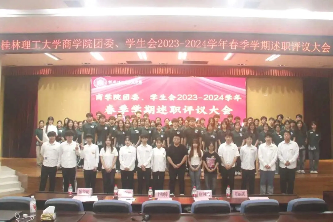 为了全面回顾与总结我院团委、学生会自春季学期以来的辛勤耕耘与辉煌成就,进一步激发组织活力,推动我院团学工作迈向更高水平,我院团委、学生会于7月4日在雁山校区图书馆报告厅隆重召开了“商学院团委、学生会2023-2024学年春季学期述职评议大会”。学院团委书记于帅帅老师出席本次大会,商学院团委、学生会全体成员参加会议。 会上,团委、学生会的每一位部门代表及主席团成员,均以饱满的热情和严谨的态度,逐一上台...