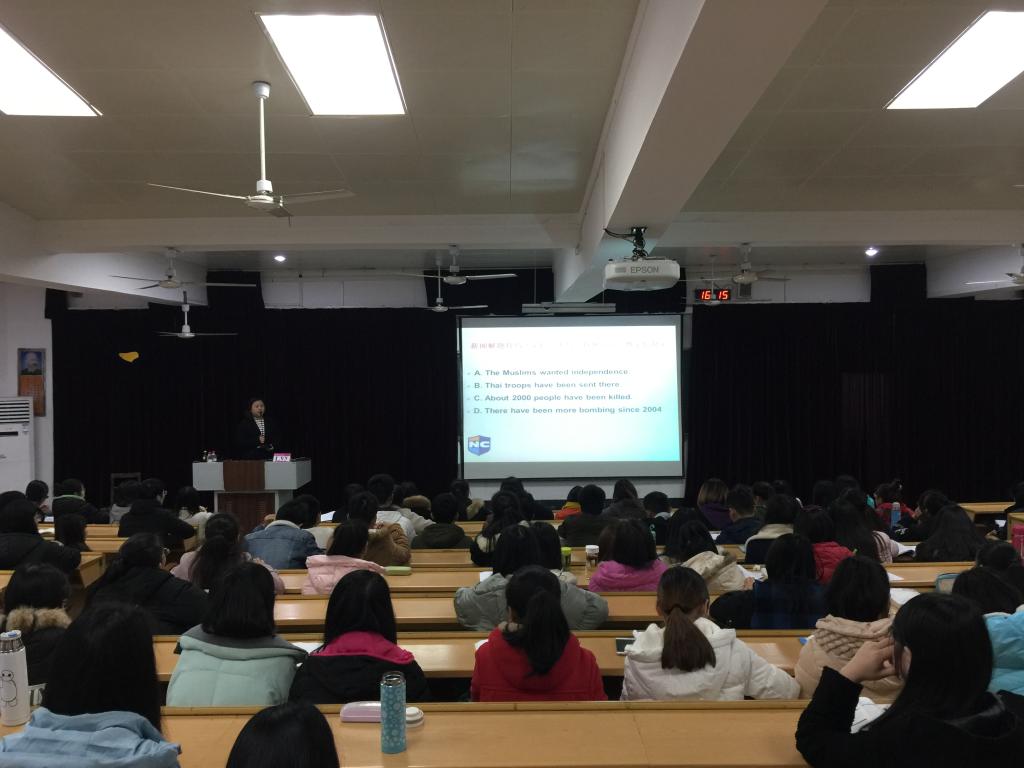 为了帮助学生提升大学英语四级考试学习技巧,我院特别开展了大学英语四级考试专题辅导班。本次辅导班邀请了新航道英语培训学校的老师Ivy作专题讲座。讲座于2017年4月26日晚19:00在屏风校区9501教室召开。管理学院201...