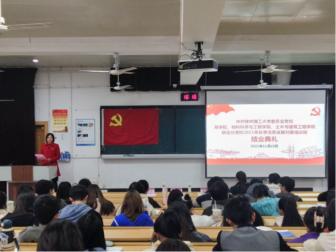 2021年11月23日下午,商学院、材料科学与工程学院、土木与建筑工程学院联合分党校2021年秋季学期党员发展对象培训班结业典礼圆满落幕。材料科学与工程学院党委副书记徐时、商学院组织员、分党校教务员梁译匀、材料科...