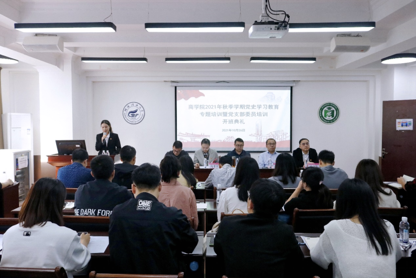 10月26日下午,我院举办商学院2021年秋季学期党史学习教育专题培训暨党支部委员培训班开班典礼,学院领导、党委委员、组织员、各党支部书记以及培训班全体学员参加。 开班典礼在庄严的国歌声中拉开帷幕。学院党委副书...