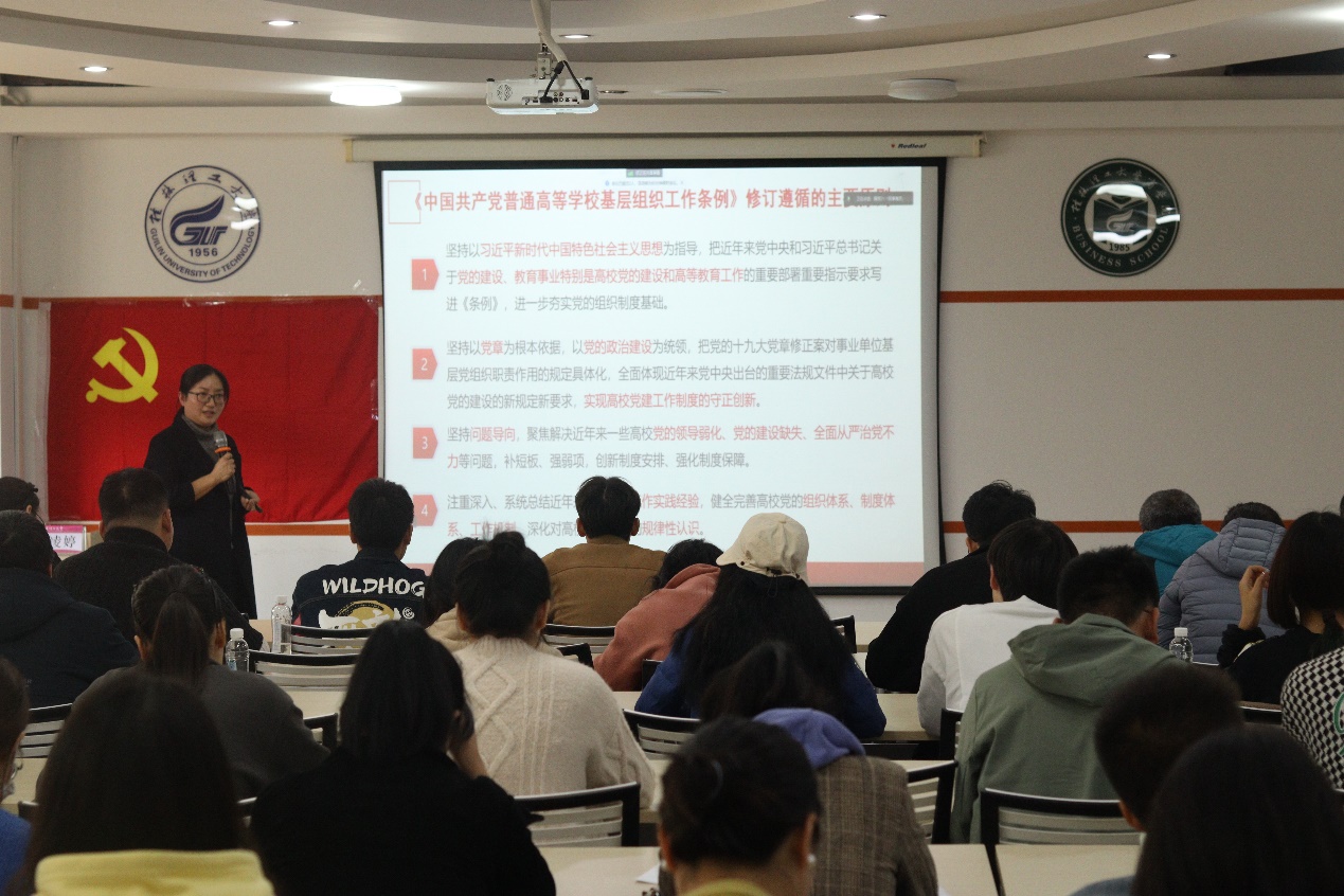 为深入学习贯彻习近平新时代中国特色社会主义思想,深化党建与业务工作融合发展,12月8日下午,学院在屏风7313会议室开展2023年秋季学期基层党支部书记培训班授课,学院党委书记白凌婷以“明确职责 抓好重点 推动发展 做一名优秀的高校基层党支部书记”为题作专题授课,商学院、土木与建筑工程学院、材料科学与工程学院全体党支部书记参加学习。白凌婷结合自身理论学习体会和工作调研的所思所悟,紧紧围绕主题,分别从“中国共...