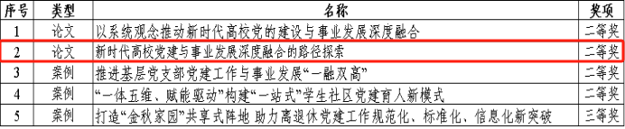 日前,自治区党委教育工委公布文件《自治区党委教育工委办公室关于征集全区教育系统推进党建与事业发展“一融双高”优秀党建研究论文和创新典型案例的通知》(桂教工委办〔2023〕118 号),我校2篇高校党建研究论文以及3个高校党建创新典型案例在本次评选中喜获佳绩,其中二等奖4项,三等奖1项。我院教师陈琳、白凌婷撰写的高校党建研究论文《新时代高校党建与事业发展深度融合的路径探索》荣获高校组二等奖。此次获奖展示了党...