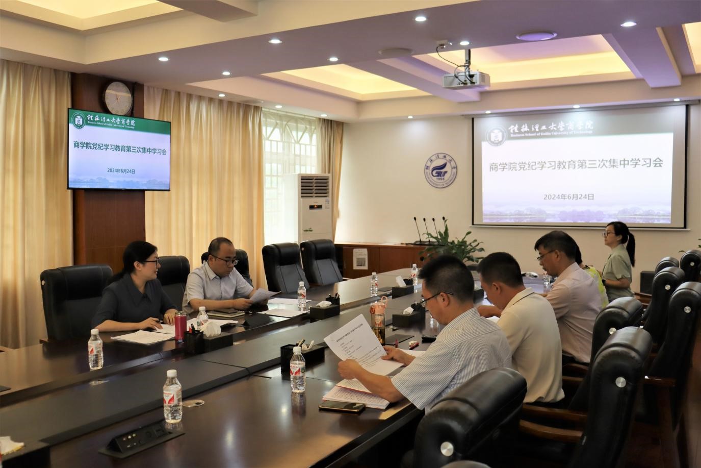 6月24日,学院在屏风校区7206会议室开展党纪学习教育第三次集中学习会。党政班子成员、党委委员参加学习。会议由学院党委书记白凌婷主持。根据学习计划安排,学院副院长王兴中、卢智增分别领学了《中国共产党纪律处分条例》(以下简称《条例》)总则第四章和第五章的内容,并结合实际工作谈了自己的学习体会,廖帅以书面形式汇报对《条例》分则第六章的学习体会。白凌婷在总结讲话时强调,开展党纪学习教育是今年党建工作的一项...