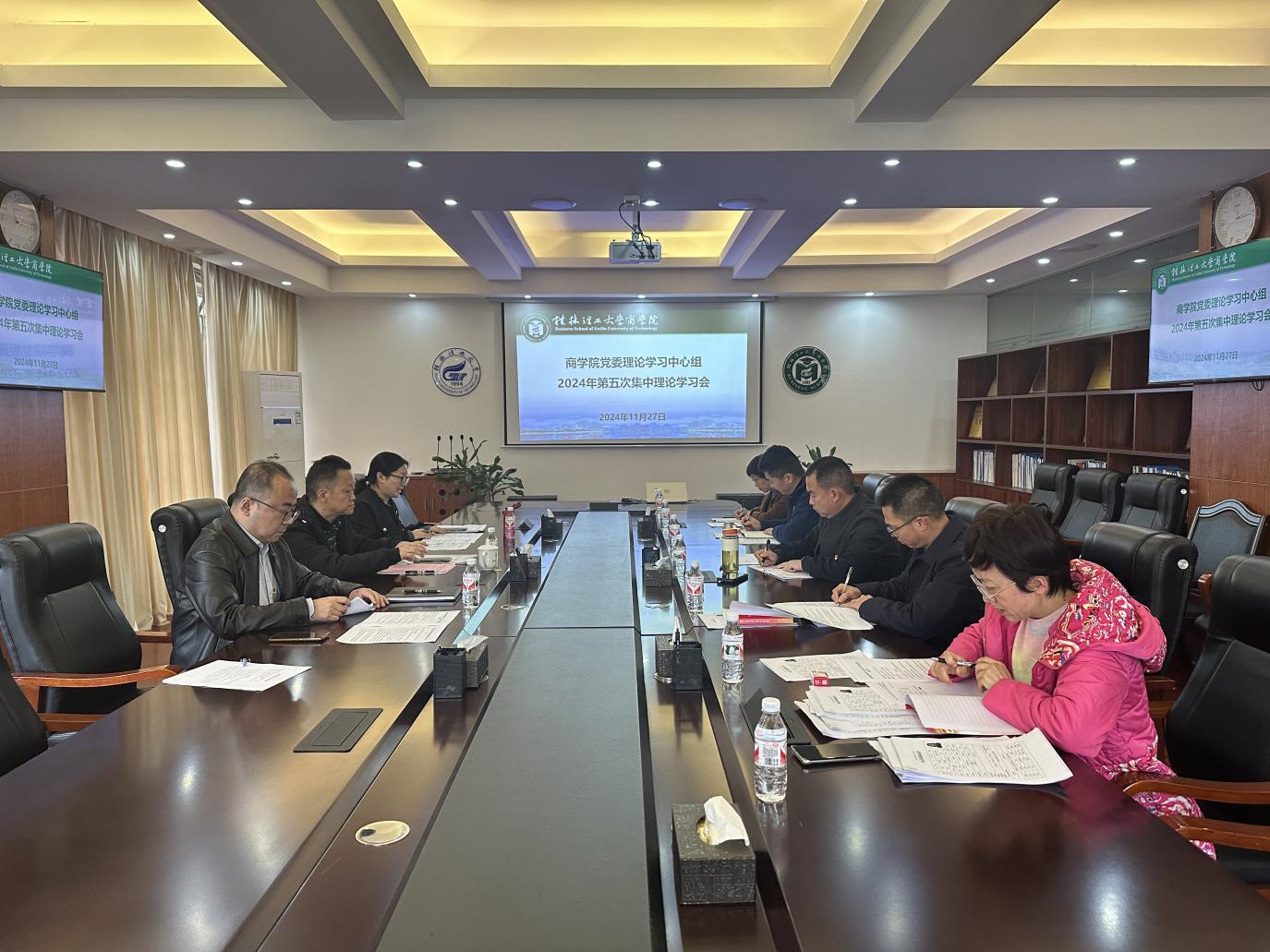 11月27日下午,学院在屏风校区7206会议室召开党委理论学习中心组2024年第五次集中理论学习会,学校党委常委、总会计师曾繁荣到会巡听旁听并作点评讲话,全体班子成员、党委委员参加会议。会议由学院党委书记白凌婷主持。 会上,白凌婷、李雷、饶蠡、卢智增、廖帅分别围绕习近平总书记在全国民族团结进步表彰大会上的重要讲话精神、习近平总书记在中共中央政治局第十七次集体学习时的重要讲话、《中华人民共和国保守国家秘密法...