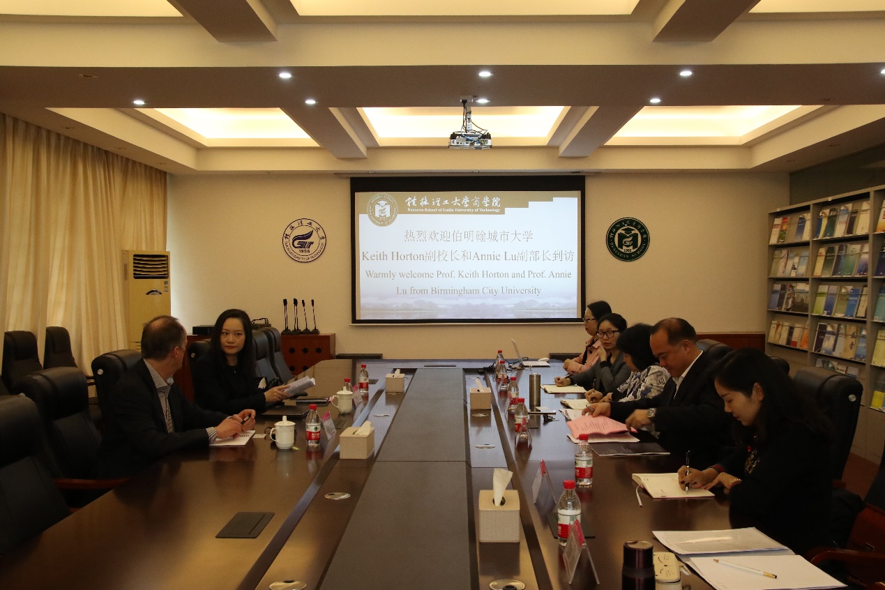 4月25日上午,英国伯明翰城市大学Keith Horton 副校长和商法社科学部Annie Lu副部长做客商学院。学院连漪院长、江晓云副院长热情接待来宾,并在7206会议室进行了座谈交流。 会议中,连院长首先对二位来宾的到访表示热...