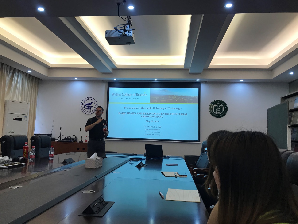 2019年5月20日上午,美国阿巴拉契亚州立大学沃克商学院Steven Creek教授一行到我院进行访问交流,本次交流活动由市场营销穆慧敏老师全程进行接待并担任翻译工作。 Steven Creek 教授做了主题为“Dark Traits and Beh...