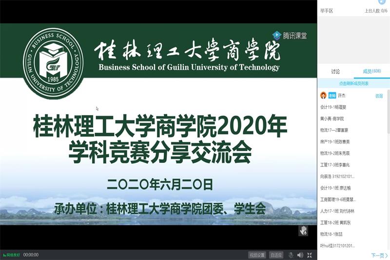 为了促使学生全面了解学科竞赛,激发学生的参赛热情,更好地推动学院“商学期”系列活动的开展,6月20日晚,我院在腾讯课堂线上平台举办了2020年学科竞赛分享交流会。由陈江辉、李善犇、农小金、孙铭君、许杰、冯研同...