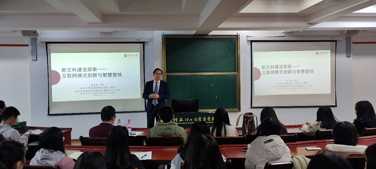 11月27日下午,北京大学软微学院金管系副主任、北京大数据研究院保险大数据中心主任赵占波教授在我校商学院7311教室作题为“新文科建设探索—互联网模式创新与智慧营销”的学术讲座。讲座由市场营销教研室主任卜正学...