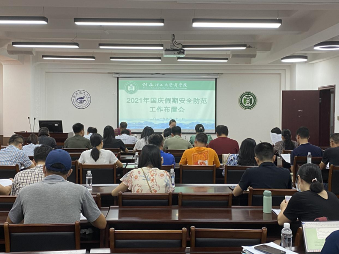 9月23日下午,商学院在屏风校区7309会议室召开国庆假期安全防范工作布置会。学院党委副书记沈菲菲、副院长王兴中出席会议,学院各教研室主任、全体辅导员及班主任参加本次会议。 会上,沈菲菲就近期做好师生防范诈骗...