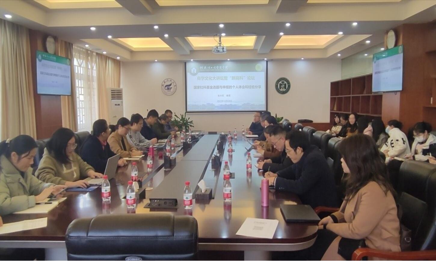 为进一步推进学院2024年度国家社会科学基金项目申报工作,12月28日下午,在屏风校区7206会议室举办商学院文化大讲坛暨“新商科”论坛。本次论坛特邀广西青年文化拔尖人才张兴旺教授作了“国家社科基金选题与申报的个人体会和经验分享”专题讲座,学院部分科研骨干,拟申报项目的教师及研究生40余人参加了本次讲座,讲座由廖帅副院长主持。会上,张兴旺教授结合个人三次获得国家社会科学基金项目的申报经历,围绕申报过程中的如...