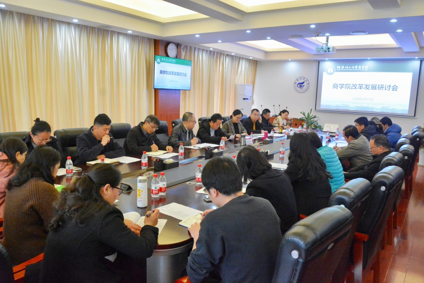 2024年3月13日上午,商学院在屏风校区教七楼7206会议室召开改革发展研讨会,研讨如何贯彻落实学校党委三届七次全会精神、落实和完成学校第三次党代会目标任务。学校党委常委、总会计师曾繁荣到会指导,学院党委书记白凌婷,党委副书记、院长李雷,党委副书记、纪委书记饶蠡,副院长王兴中、卢智增、廖帅,院长助理梁健爱、罗薇等党政领导班子全体成员,以及学院各科室(教研室、实验室)主要负责人和教师代表参加会议,会议由白...