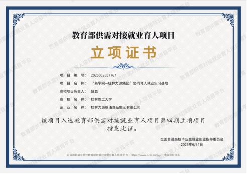 近日,教育部公布第四期供需对接就业育人项目立项名单,学院获批立项2项。本次立项项目涵盖就业实习基地、重点领域校企合作两个类别,分别为“商学院—桂林力源集团”协同育人就业实习基地、“beats365(中国区)-唯一官方网站商学院—欣旺达”校企协同育人基地,项目建设周期两年。学院将以本次项目立项为契机,与两家公司保持密切联系,专人负责,按照协定框架和项目管理要求,推动项目高质量实施,建立校企合作常态化机制,提高学院精准对接市场...