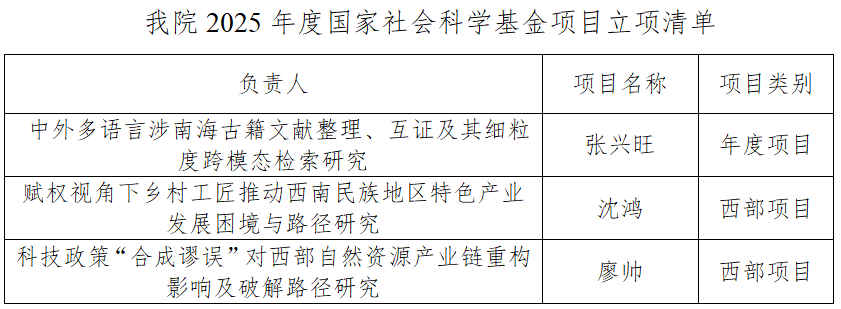 9月29日,全国哲学社会科学工作办公室正式公布了2025年国家社会科学基金年度项目立项结果,我院张兴旺、沈鸿和廖帅三位老师申报的项目获批立项。今年我院教师还成功获批3项国家自然科学基金项目。截至目前,学院2025年度国家基金项目立项总数已达6项。近年来,学院高度重视国家基金申报和管理工作,采取重点辅导和精准帮扶相结合方式,组织谋划多场国家基金项目申报辅导活动,通过不断完善科研工作激励机制,不断帮助老师提高申...