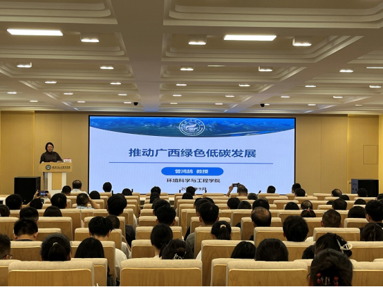 9月28日下午,学院邀请我校环境科学与工程学院院长曾鸿鹄教授作题为“推动广西绿色低碳发展”的专题讲座。学院全体教师、研究生代表共300余人参加讲座,讲座由学院党委副书记、院长李雷主持。讲座中,曾鸿鹄教授结合自身丰富的工作经验和丰硕的研究成果,从“政策背景与国家战略”“绿色低碳概念与路径”“广西绿色低碳发展概况”“我校学科专业及其贡献”四个方面,全面介绍了环境科学与工程学院在推动广西绿色低碳发展做出的...