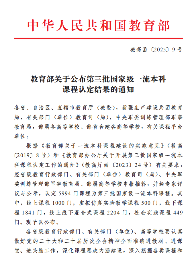 近日,教育部发布了《教育部关于公布第三批国家级一流本科课程认定结果的通知》(教高函〔2025〕9号),我院马小龙教授团队申报的《创业学》课程成功入选“第三批国家级一流本科课程”,为我院“十四五”圆满收官、“十五五”良好开局提供有力支撑。近年来,我院坚持以党建为引领、以学生为中心、以问题为导向、以课程建设为抓手,持续深化本科教育教学内涵建设,着力打造一批具有前沿性、创新性、时代性的一流本科课程,持续推...