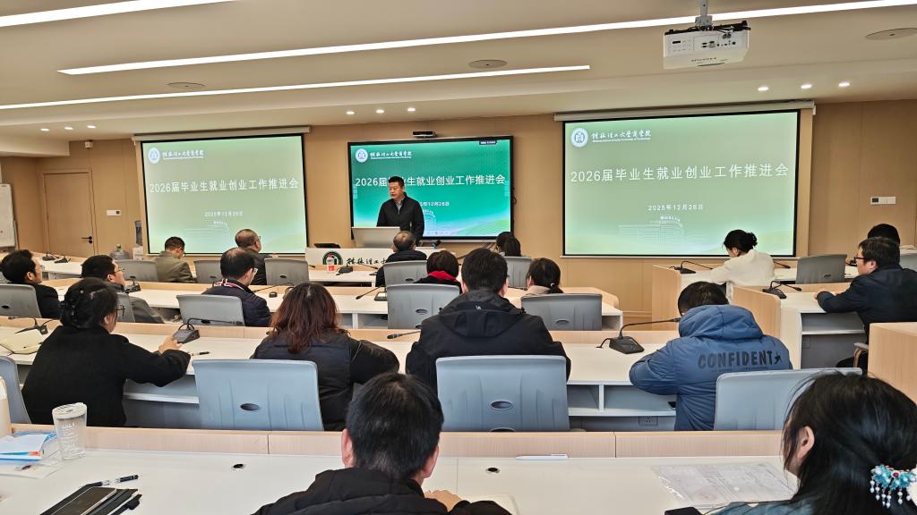 为扎实推进学院2026届毕业生就业创业工作,12月26日上午,学院在屏风校区7307教室召开2026届毕业生就业创业工作推进会。学院领导班子成员、各科室负责人、各教研室负责人、全体党支部书记、毕业班辅导员和班主任参会。会上,学院党委书记王璐强调,就业工作是最大的民生,直接关乎学生的切身利益,对于推进学院高质量发展具有重要意义。全院上下要牢固树立“一盘棋”思想,压紧压实各方责任,严守工作底线,着力提升就业质量,...