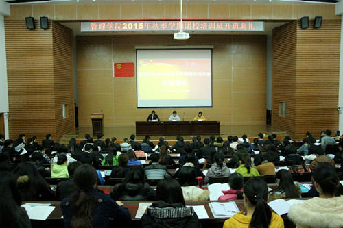 12月14日晚,我院2015年秋季学期团校培训班开班典礼在屏风校区图书馆报告厅召开。学院党委副书记张瑞、团委副书记曾丽萍出席开班典礼,团委副书记吴宜峰主持开班典礼。学院各学生组织的学生骨干及2013、2014级各班班...