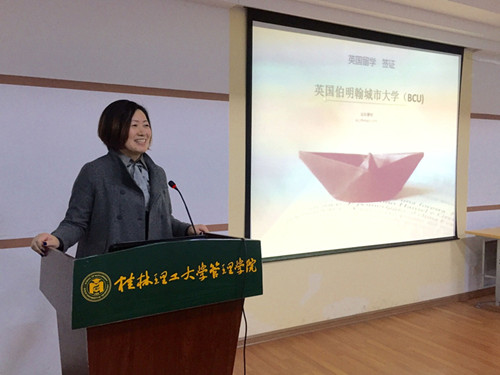 12月12日下午,伯明翰城市大学国际招生官员陆筱筠老师与广西外国语学院国际教育服务中心运营总监任平女士到我院进行英国留学项目宣讲。我院营销、国贸等专业学生参加了本次宣讲会。 会上,陆筱筠老师首先向学生们宣传...