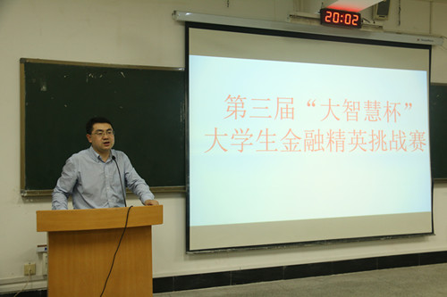 4月22日晚,我院在屏风9201教室隆重召开第三届“大智慧杯”大学生金融精英挑战赛参赛动员会。学院党委书记白永生,MBA中心副主任王若晨,国际经济系教研室主任谢廷宇,团委副书记曾丽萍,学院证券投资方面专家以及国...