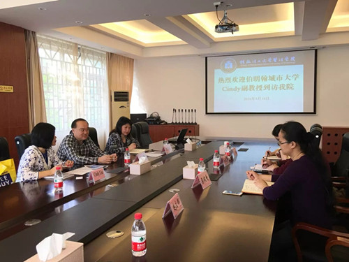 5月10日上午,英国伯明翰城市大学Cindy LIU副教授做客管理学院。学院连漪院长、江晓云副院长热情接待来宾,并在7206会议室进行了座谈交流。 在7206会议室召开的座谈交流会上,Cindy副教授首先介绍了伯明翰城市大学商...