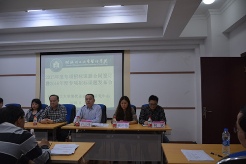 5月10日下午,学院现代企业管理研究中心(以下简称“中心”)在屏风校区7 309教室举办了2015年度专项招标课题合同签订暨2016年度专项招标课题发布会。肖岳峰副校长和科技处、财务处负责人一起出席了会议。学院行政领...