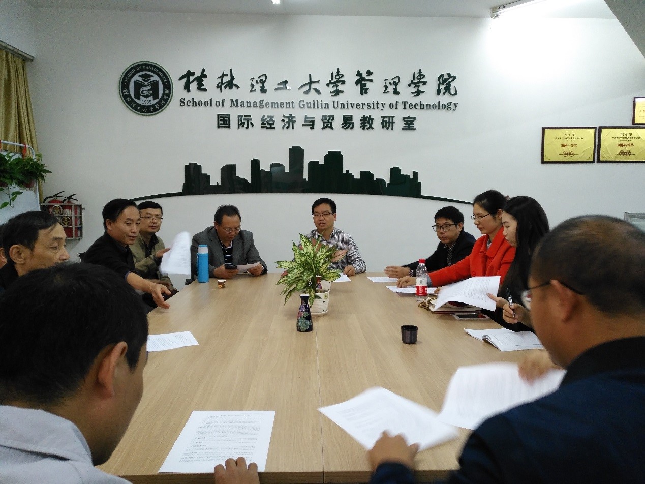 2017年11月15日下午,蒙永亨副院长赴国际经济与贸易教研室调研指导学科建设工作。 蒙副院长认真听取了教研室在学科建设和科研工作的进展汇报,然后对照应用经济学一级学科硕士学位授权点申请的基本条件,逐条剖析了商...