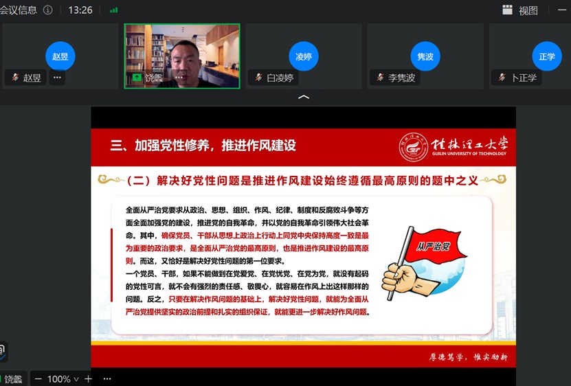 6月27日,商学院教工第二党支部在7201开展6月主题党日活动。活动由支部书记张倩主持。会上,集中学习了习近平总书记在《求是》杂志上发表的重要文章《锲而不舍落实中央八项规定精神,以优良党风引领社风民风》,从“八项规定十二年砥砺前行”“纠治‘四风’永远在路上”“以作风建设厚植党群干群血肉联系”三个层面作了系统解读,强调中央八项规定是全面从严治党的开篇之作,更是党性锤炼的“磨刀石”。会议指出,作风建设不是...