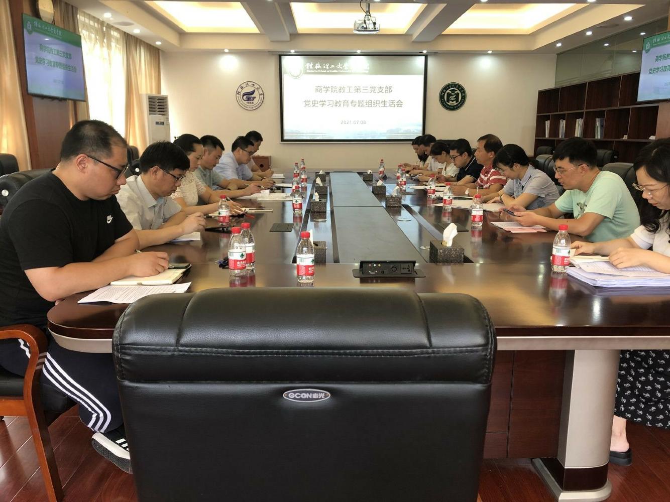 2021年7月8日上午10:00,商学院教工三支部在7206召开党史学习教育专题组织生活会,会议由支部书记刘黔川主持,白永生、沈鸿等共计13名支部成员参与会议,学校党史学习教育督导组成员莅临全程参与 。 会前,为了提高...