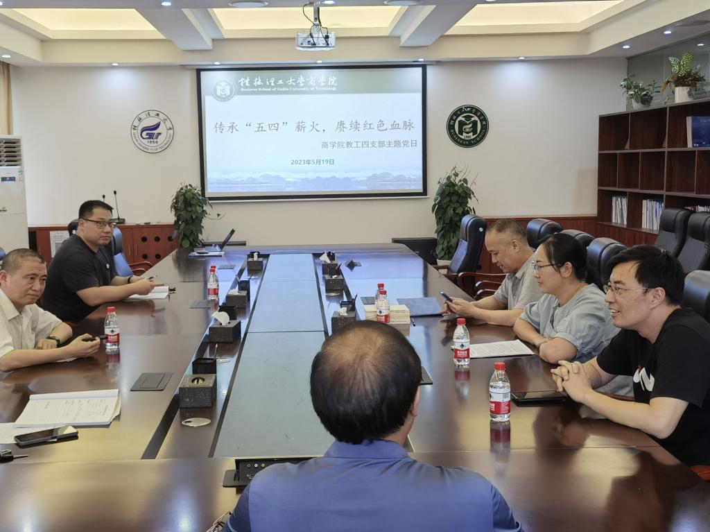 商学院教工第四党支部于5月19日下午在7206召开“传承‘五四’薪火,赓续红色血脉”主题党日活动。会议由支部书记刘黔川同志主持。会议结合纪念“五四运动”104周年背景,深入学习习近平总书记在庆祝中国共产主义青年团成立100周年大会上的重要讲话精神,习近平总书记关于青年工作的重要论述。与会党员同志围绕活动主题,结合自身担任班主任的工作实际情况,就如何培养和引导学生进行了交流。大家一致认为,除了培养学生专业能力...