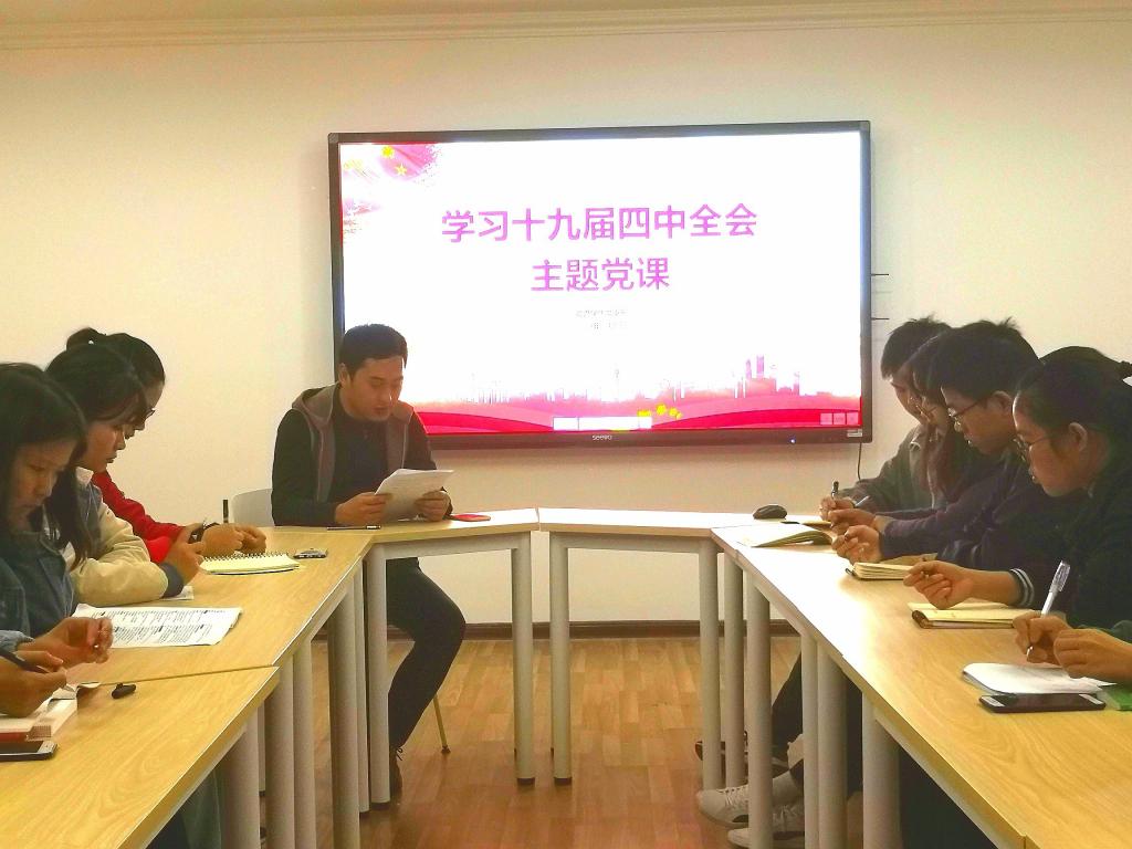 为深入学习贯彻落实党的十九届四中全会精神,物流学生党支部于11月8日晚在屏风校区7201会议室召开主题党课,共同学习十九届四中全会精神。支部书记白宇航及其他成员共17人参加了活动。 会议伊始,与会成员共同回顾了...