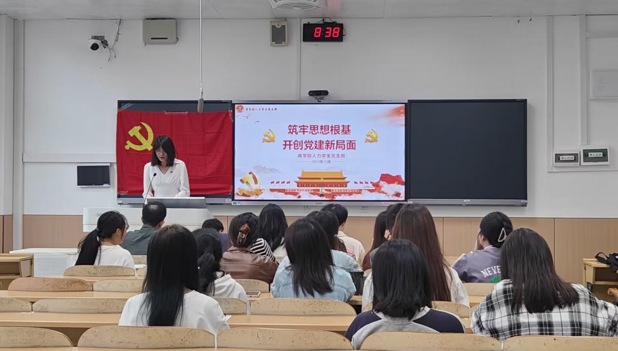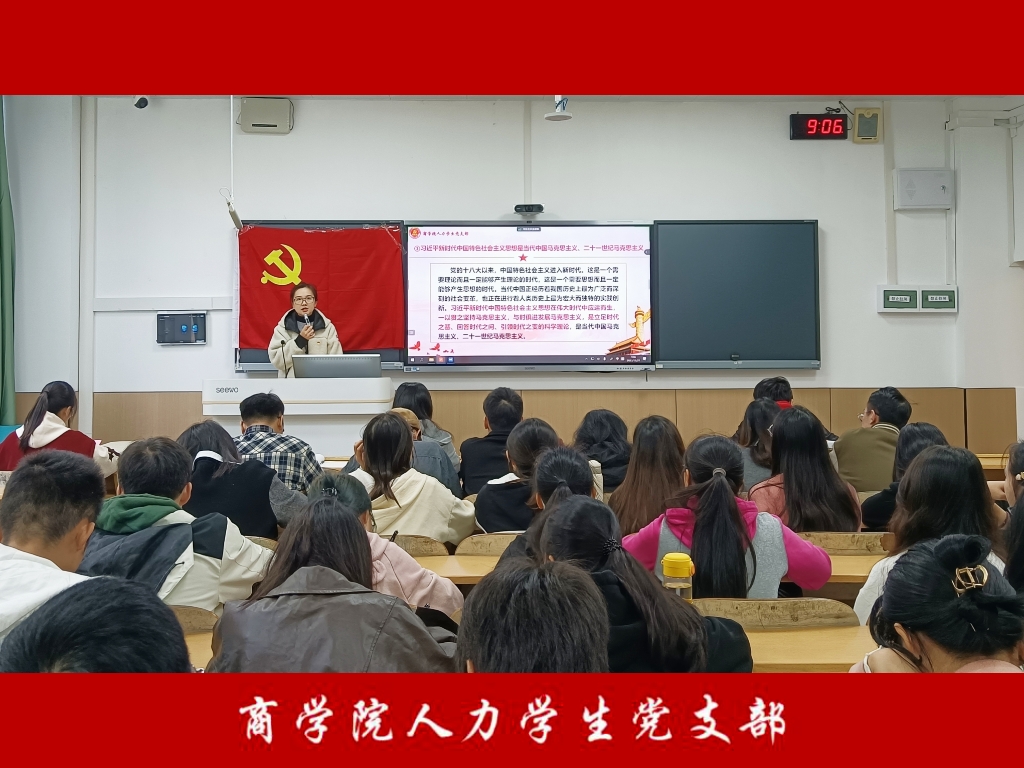 为激励广大青年坚定理想信念,激发使命担当,2023年10月24日,人力学生党支部在屏风校区9310教室开展了“筑牢思想根基,开创党建新局面”主题党日活动。首先,吕铭茵同志带领支部同志学习习近平总书记在《求是》杂志发表的重要文章《推进中国式现代化需要处理好若干重大关系》、深入学习贯彻习近平文化思想——论贯彻落实全国宣传思想文化工作会议精神、学习习近平总书记对宣传思想文化工作作出重要指示。吕铭茵同志强调:我们要...