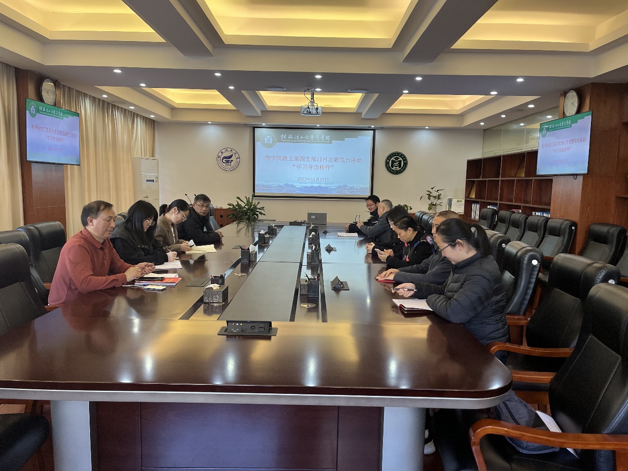11月17日下午,商学院教工第四党支部在7206开展主题党日活动,支部成员参与学习,本次会议由支部书记刘黔川主持。会议依据两个模块逐次开展:1、集体学习贯彻习近平总书记近期讲话,强化习近平新时代中国特色社会主义思想,用思想武装头脑,指导实践,推动工作;2、开展学习身边榜样活动。会上,支部书记领学“习近平在第三届‘一带一路’国际合作高峰论坛开幕式上的主旨演讲”,带领支部成员认真学习领会习近平总书记对宣传思...