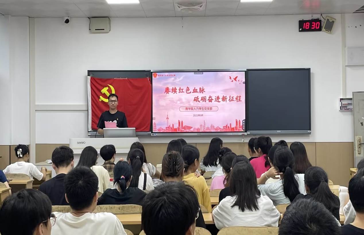 为进一步学习贯彻习近平新时代中国特色社会主义思想,激励广大青年学子坚定信仰,勇毅担当,以优秀党员为榜样,传承红色血脉、砥砺奋斗征程。2023年9月20日,人力学生党支部在屏风校区9110教室开展了“赓续红色血脉,砥砺奋进新征程”主题党日活动。首先,李敏锋同志带领支部同志学习习近平总书记在《求是》杂志发表的重要文章《在文化传承发展座谈会上的讲话》和《中国式现代化是强国建设、民族复兴康庄大道》。他指出,我们要...