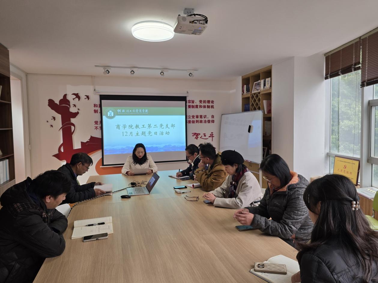 12月13日下午,商学院教工第一党支部在7212开展12月组织生活。会议由支部书记刘黔川主持。会上,支委陈奕青围绕习近平总书记在省部级主要领导干部学习贯彻党的二十届三中全会精神专题研讨班开班式上的讲话精神进行领学,指出我们要深入学习领会习近平总书记重要讲话精神,深刻把握进一步全面深化改革的指导思想、总体目标、重大原则、科学方法,坚定改革信心、把准改革方向、强化改革责任、汇聚改革合力,齐心协力抓好全会《决...