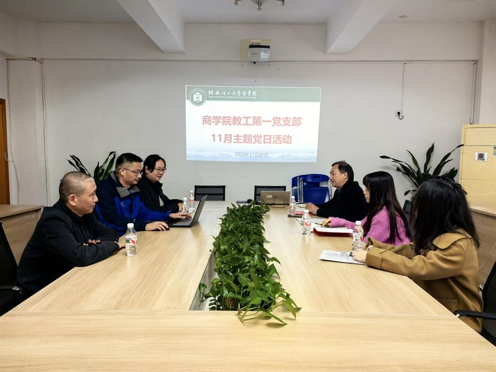 11月29日下午,商学院教工第一党支部在7212开展11月主题党日活动。会议由支部书记刘黔川主持。会上,支委陈奕青领学党的二十届三中全会精神,深入学习领会“改革开放是当代中国大踏步赶上时代的重要法宝”这一精神实质。接着刘黔川围绕习近平主席参加G20峰会的重要讲话进行了领学,并组织支部党员开展讨论。会上,还对支部年度工作进行了总结,对接下来的工作进行了谋划和部署。会议现场(一审:刘黔川;二审:梁译匀;三审:饶蠡