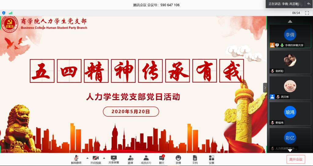 青年节时忆往昔,五四精神广传扬。5月20日,我院人力学生党支部开展“五四精神传承有我”线上主题党日活动。会议由支部李倩同志主持,支部党员、预备党员以及积极分子参与本次会议。 会上,全体与会同志通过漫画的形...